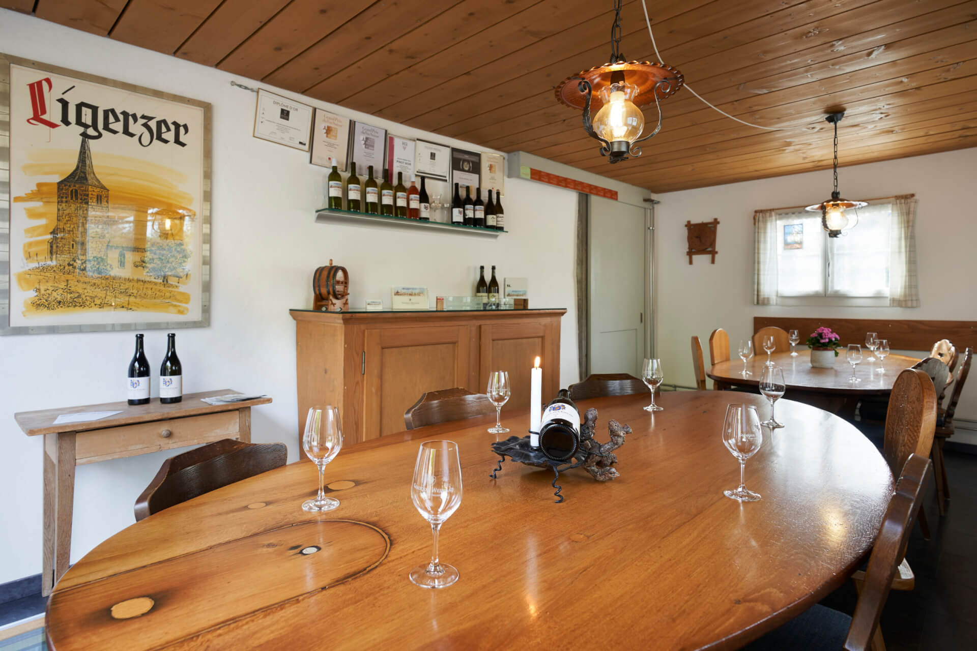 Über Wein kann man schreiben und reden, vor allem aber sollte man ihn probieren und geniessen. In unserem Carnotzet können Sie unsere Weine bei einem gemütlichen Apéro mit ihren Freunden degustieren (bis maximal 18 Personen).